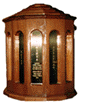 The casket into which the urn containing the remains of LaSalle Corbell Picket was placed was built especially for the reinterment by Pickett family member Alan Pickett of Greensburg, Kentucky. Crafted from redwood and lined with red velvet, the casket has thirteen sides representing the thirteen States of the Confederacy that Mrs. Pickett's husband served during the War Between the States. Brass plates bearing the names of the States are set into recessed niches carved into each side. The casket is fitted with brass handles and is topped by a bronze replica of the Great Seal of the Confederacy.
