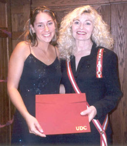 Virginia Division President Mrs. John W. Lougheed presented the Division's J.E.B. Stuart-Real Daughters Award to Amy L. Bunt, a student at Virginia Polytechnic Institute and State University, on March 28, 2003, at the German Club in Blacksburg, Va. The award recognizes the graduating student at Virginia Tech with the highest scholastic achievement in the field of equine science.