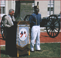 At the reception following the ceremony, the Virginia Division donated $2100 to VMI Museum for the complete restoration of General Jackson's uniform trousers, which were on display for the first time that day. They match the uniform frock coat, which is still in need of restoration. The UDC urges all interested parties to send a contribution to the VMI Museum for the restoration, which will cost $6600.