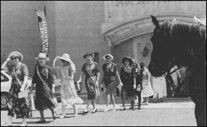 Members of the United Daughters of the Confederacy, acting as honorary pall bearers, file out of the VMI Museum to begin the proceedings.